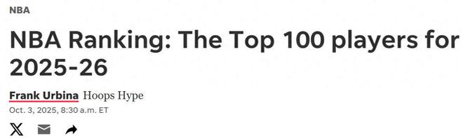 詹姆斯19名!美媒公布新赛季百大球星:勇士库里11名火箭杜兰特22